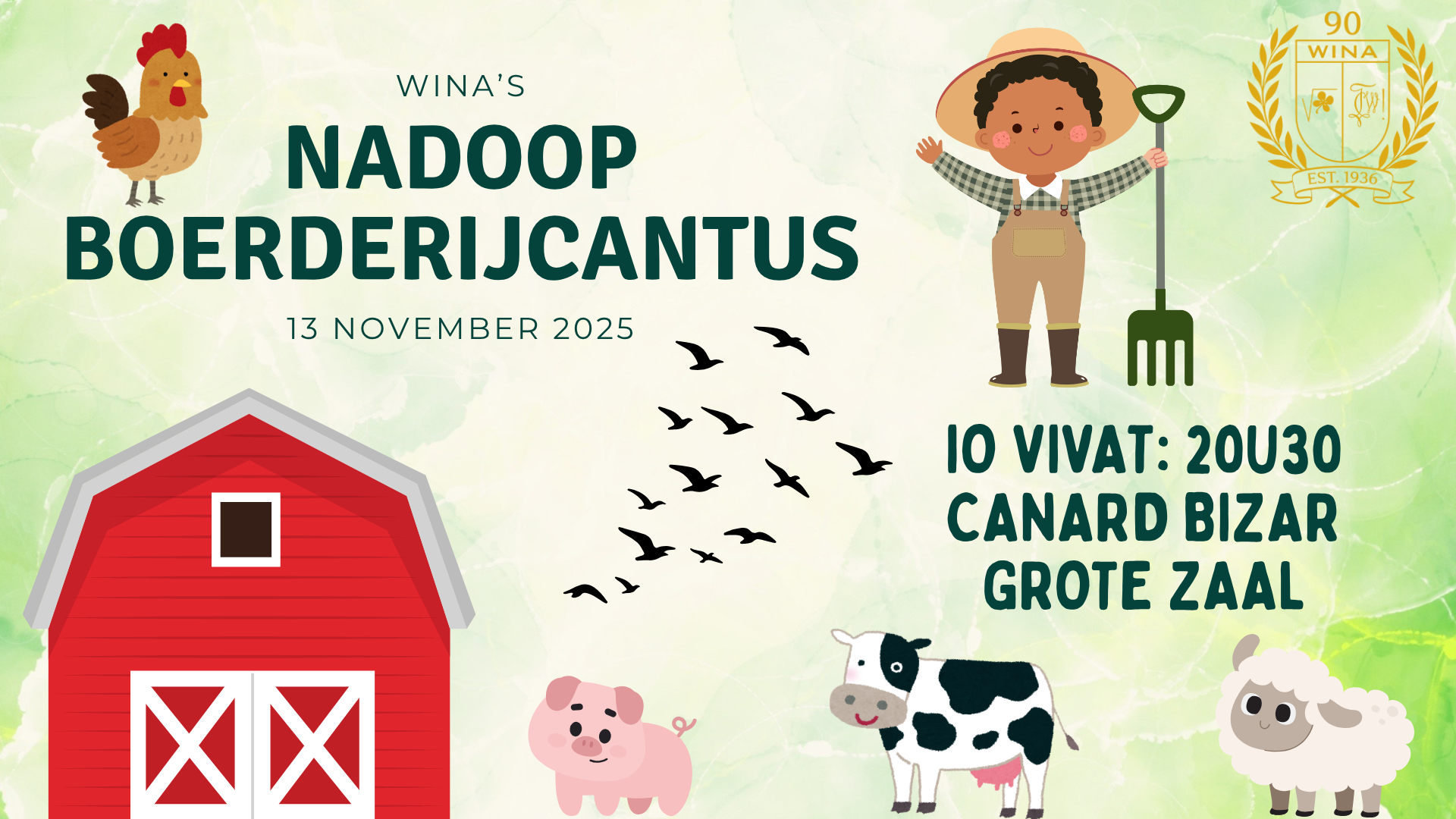 Zet je keel open en hef je glas, want tijdens onze boerderijcantus beleef je een avond vol zang, gezelligheid en boerenplezier! Tussen de strobalen en melkbussen zingen we samen de bekendste meezingers, geleid door ons alom gerespecteerde cantuspraesidium. Verwacht veel gelach, gezang en natuurlijk een goed gevuld bierglas.