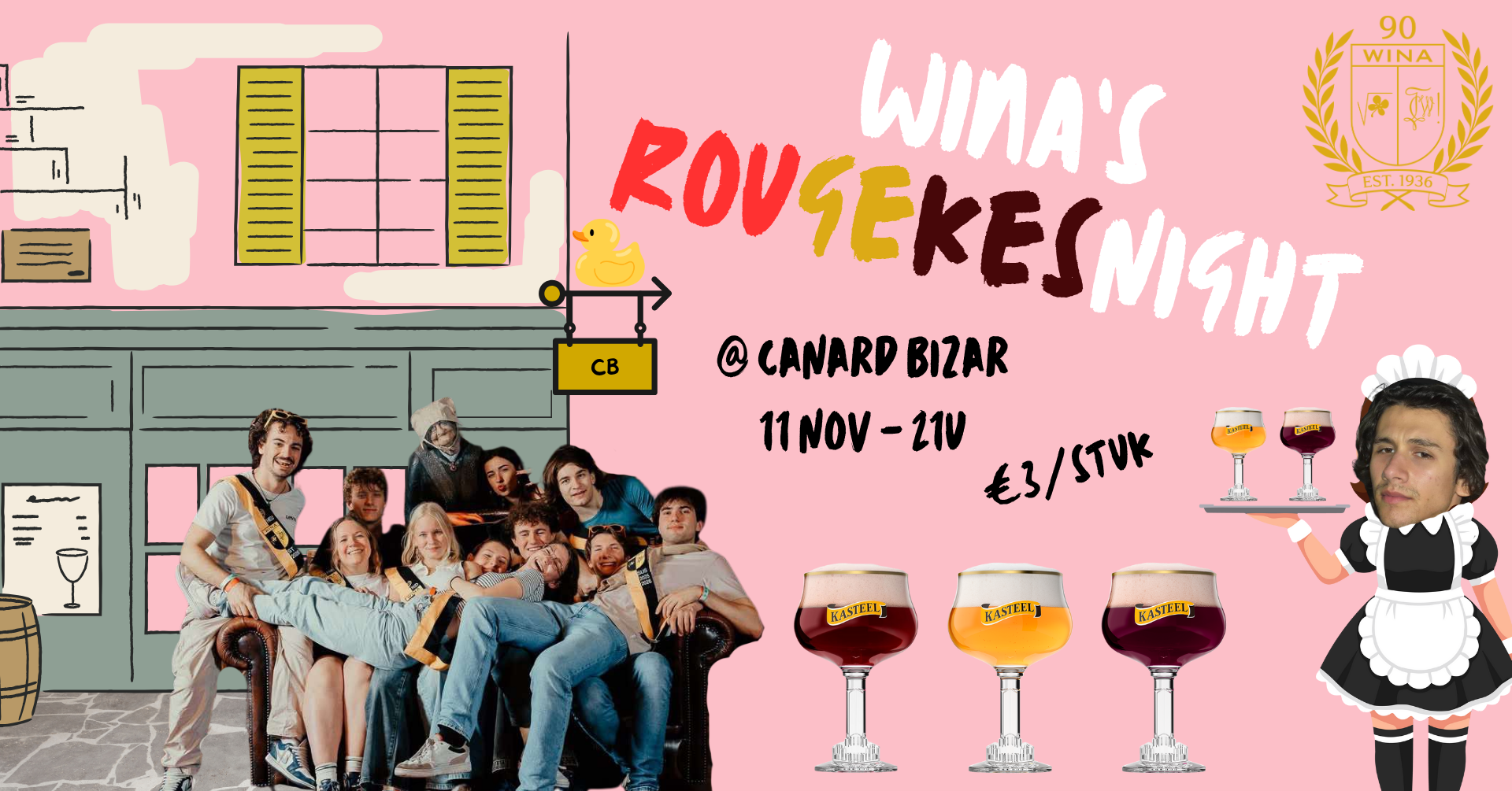 Na wat spannende afwachting kunnen we nu toch met trots aankondigen dat de Rougekesnight een comeback maakt! Kom 11 november samen met ons naar de Canard Bizar, en geniet vanaf 21u al van smakelijke Kasteelbieren. Wie zich vorig jaar nog herinnert, zal blij zijn om te horen over de terugkeer van de Kasteel Framboise en Tripel. Als hoogtepunt van de avond hebben we natuurlijk ook nog altijd de klassieke Kasteel Rouge. Deze kan je allen krijgen voor slechts 3 euro elk! Hopelijk mogen we jou verwachten!