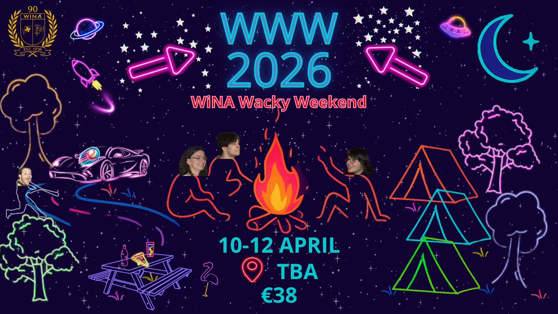 Heb jij ook het gevoel dat je tijdens de paasblok een weekendje zuurstof kan gebruiken? Een korte pauze om je hoofd leeg te maken, te lachen met vrienden en even niet aan cursussen te denken? Dan is WiNA’s Wacky Weekend van 10 tot 12 april precies wat je nodig hebt.