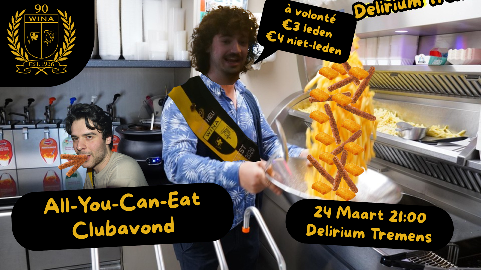 Kom dan op 24 Maart vanaf 21:00 naar de Deli om voor een zeer goedkope prijs je buikje rond te eten! Je kan namelijk voor slechts €3 als lid, en €4 als niet-lid à volonté frikandellen en kaaskroketten komen eten! Dit is een fantastische kans die je niet kan laten liggen, dus kom maar snel eens proeven.