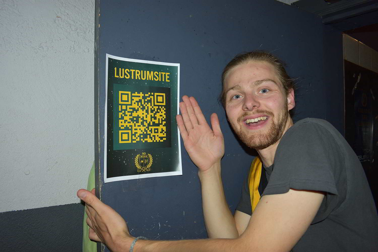 De lustrumpagina staat ondertussen online en daar hebben wij al flink wat reclame voor gemaakt, onder andere tijdens de shotjesavond. Onze geweldige lustrumvoorzitter heeft er nog even voor geposeerd, zodat iedereen weet waar ze de lustruminfo kunnen vinden.